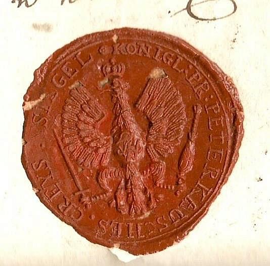 Odcisk pieczęci okręgu/powiatu piotrkowskiego w czasie przynależności do Prus Południowych.