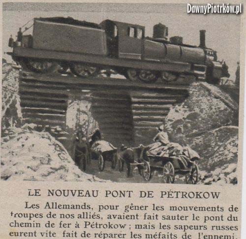 Tekst pod zdjęciem (w wolnym tłumaczeniu): NOWY MOST PIOTRKÓW Niemcy, po styczniowych ruchach wojsk naszych sojuszników, wysadzili most kolejowy w Piotrkowie; ale rosyjscy inżynierowie szybko naprawili szkodę wyrządzoną przez wroga.