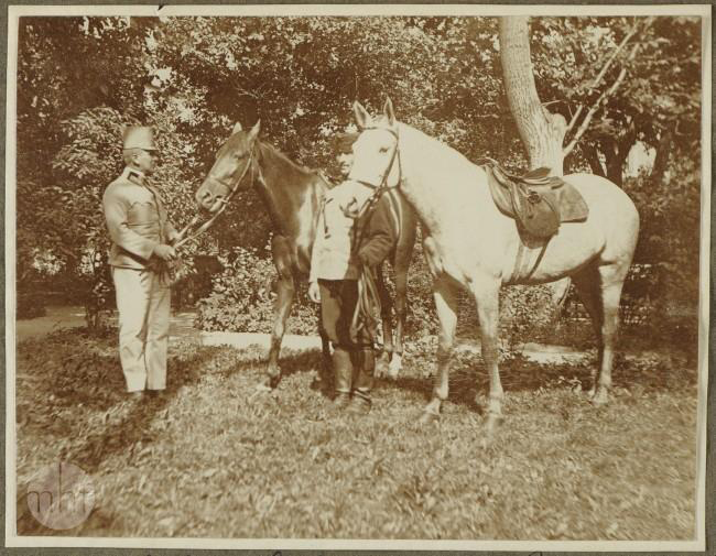 Mjr. Becher z końmi.