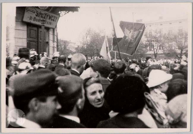 Ludność na rynku podczas defilady Legionów Polskich