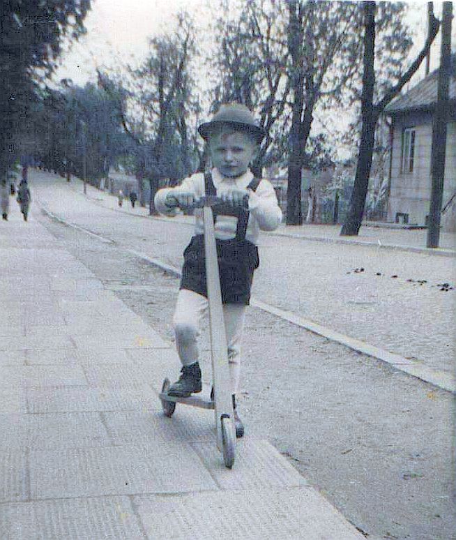 NR.15. Zdjęcie wykonane 25.4.1943r. Jestem z hulajnogą na chodniku przy piętrowej kamienicy pod NR.4. Po przeciwnej stronie widać róg parterowego domku pod NR.7 z wejściem od ulicy. Za wąskim podwórkiem był drugi parterowy domek równoległy do pierwszego. Mieszkał w nim a może w oficynie kierowca auta ciężarowego identycznego jak Lublin. Kierunkowskazami były strzałki umieszczone po bokach szoferki uruchamiane ręcznie przy pomocy linek. Auto było na gaz drzewny. Za kabiną za pasażerem był kocioł czyli szeroka i wysoka rura na górze zakończona zamknięciem. Po otwarciu klapy wrzucało się grube kawałki drzewa do palącego ognia. Okrągła klapka w bocznym otworze kotła w czasie palenia klikała. Samochód jeździł na gaz. Benzyna była dla wojska.